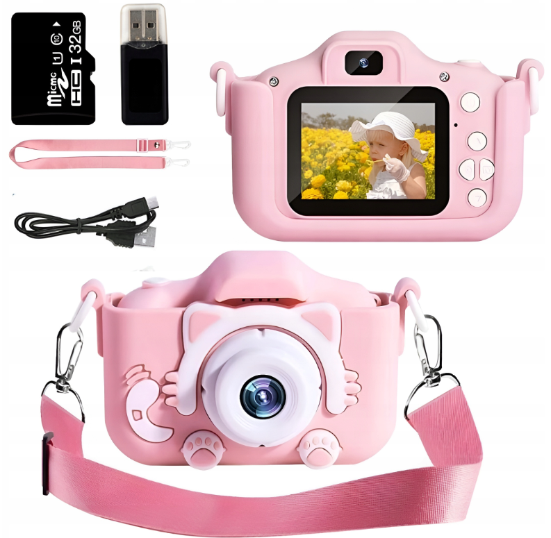 Aparat Fotograficzny Cyfrowy Dla Dzieci Różowy + Karta 32GB