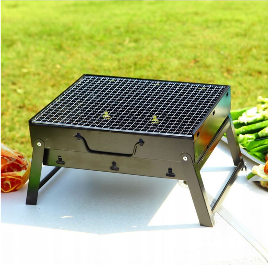 Składany grill ogrodowy wykonany ze stali nierdzewnej malowany na czarny kolor. Wyposażony w dolny ruszt na węgiel oraz uchwyty po bokach ułatwiające przenoszenie.