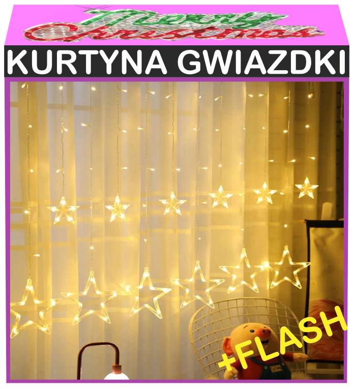 Kurtyna Świetlna z Gwiazdkami LED +Flash Lampki Świąteczne CB