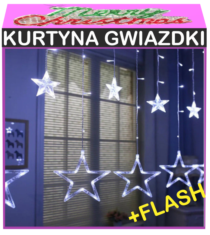 Strona główna » Oświetlenie LED » Kurtyna Świetlna z Gwiazdkami LED +Flash Lampki Świąteczne ZB