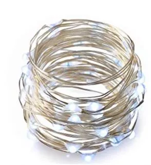 LAMPKI CHOINKOWE 50 LED NA DRUCIKU NA BATERIE BIAŁE ZIMNE ŚWIATŁO.