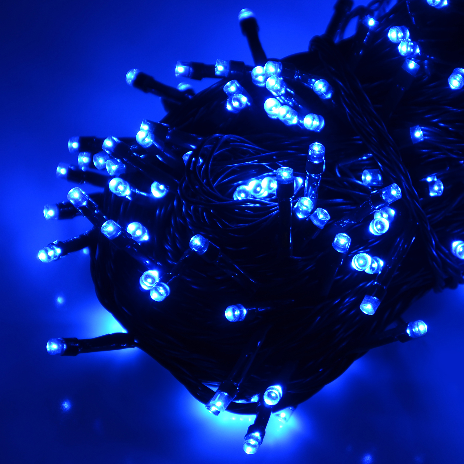 Lampki Choinkowe 200 LED Zewnętrzne Stałe Flash Niebieskie
