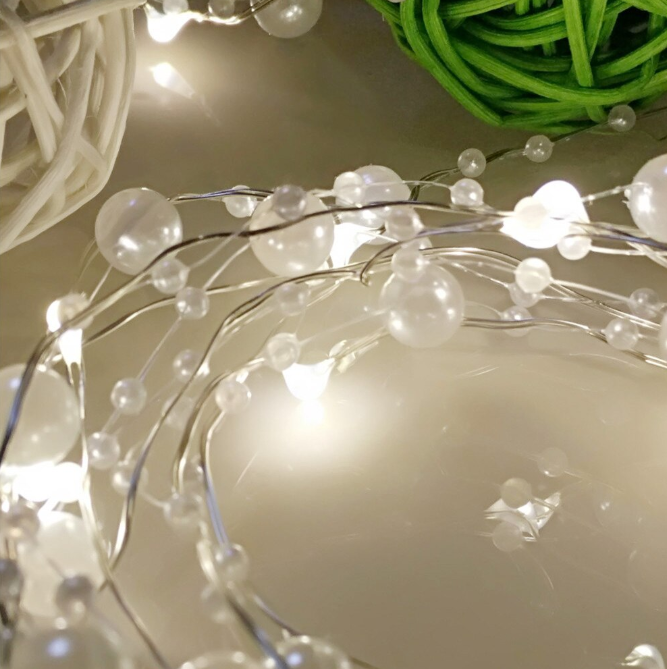 LAMPKI CHOINKOWE 20 LED PEREŁKI NA DRUCIKU NA BATERIE BIAŁE ZIMNE ŚWIATŁO.