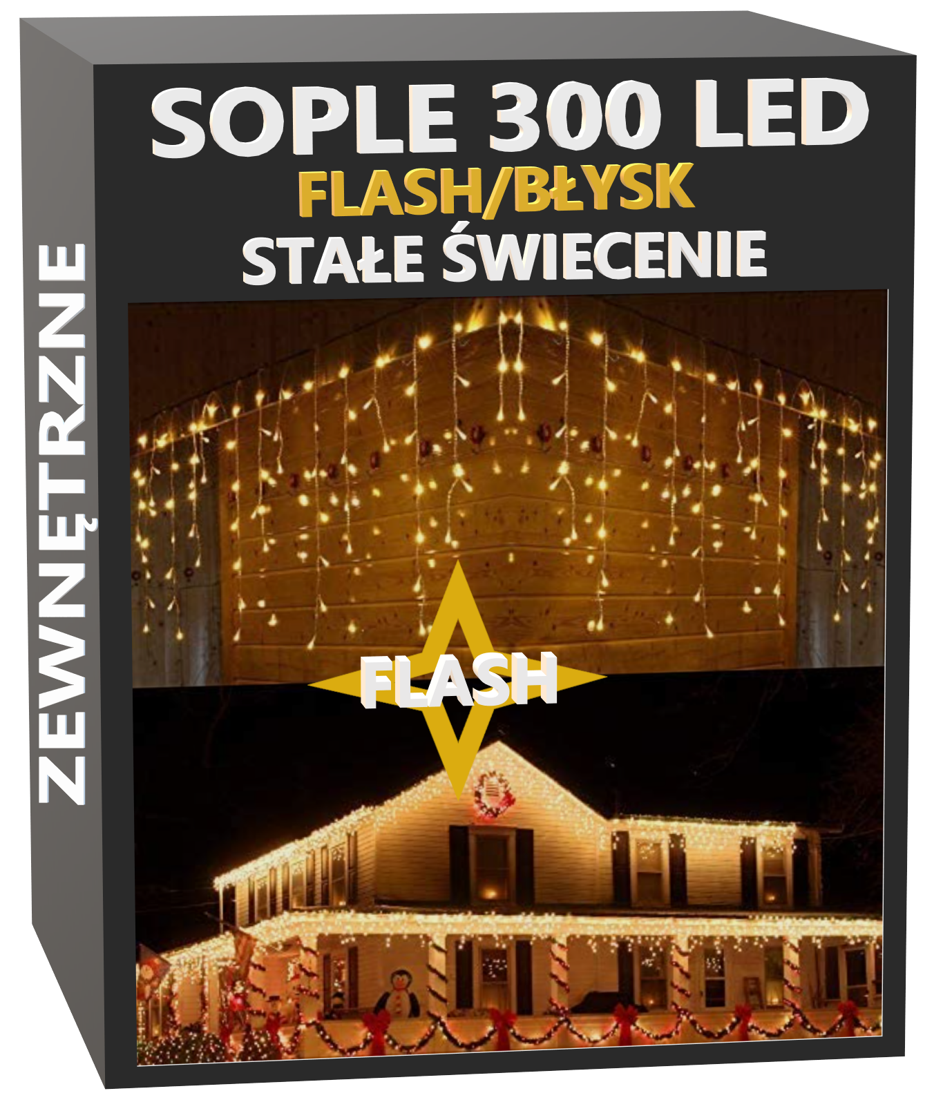 Strona główna » Oświetlenie LED » Sople 300 LED Lampki Zewnętrzne IP44 Stałe+Flash Ciepła biel