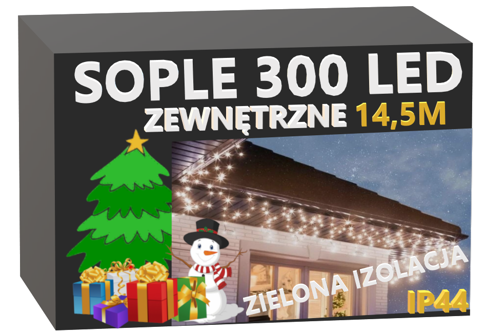 Strona główna » Oświetlenie LED » Sople 300 LED Zewnętrzne Zielony Kabel IP44 Stałe+Flash Ciepła biel