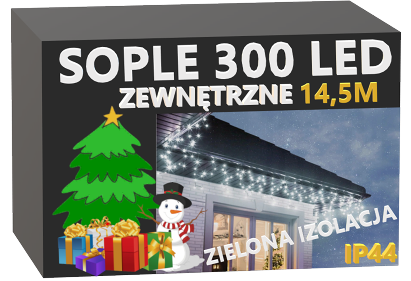 Strona główna » Oświetlenie LED » Sople 300 LED Zewnętrzne Zielony Kabel IP44 Stałe+Flash Zimna biel