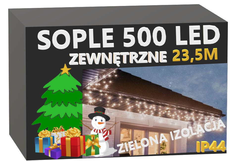 Strona główna » Oświetlenie LED » Sople 500 LED Zewnętrzne Zielony Kabel IP44 Stałe+Flash Ciepła biel